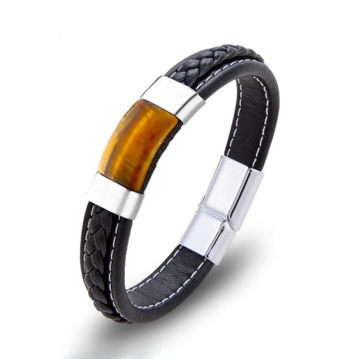 Kaplangözü Doğal Taşlı Çelik ve Deri Bileklik